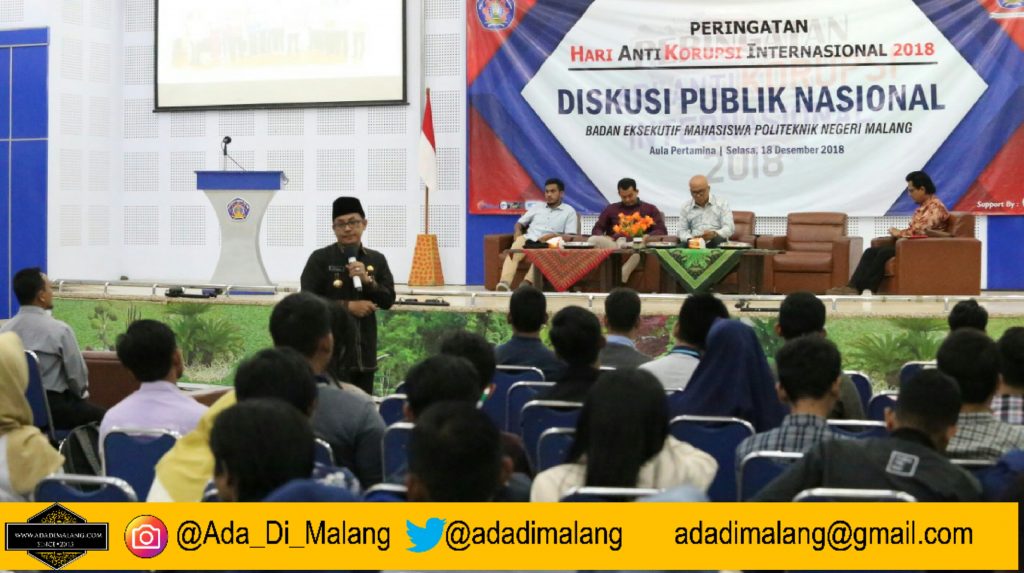 Kota Malang – Dalam rangka memperingati Hari Anti Korupsi Internasional, Badan Eksekutif Mahasiswa (BEM) Politeknik Negeri Malang (Polinema) menggelar kegiatan seminar nasional di GOR Pertamina Polinema sore hari ini, Selasa (18/12).