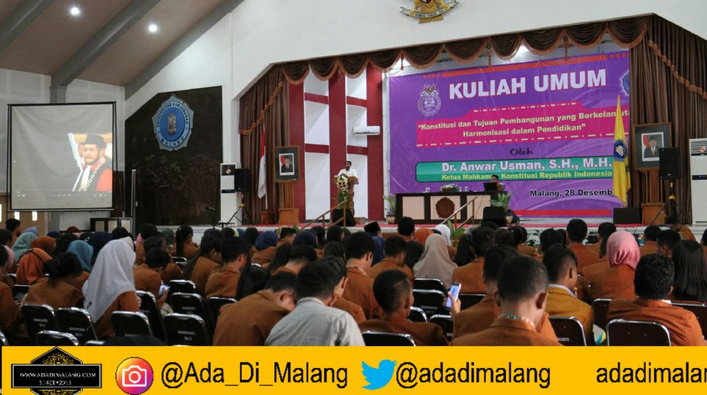 Kota Malang – Menyadari pentingnya arti konstitusi termasuk juga di dunia pendidikan, membuat Ketua Mahkamah Konstitusi (MK) Republik Indonesia Anwar Usman memberikan kuliah umum kepada para mahasiswa, dosen dan petinggi Universitas Kanjuruhan Malang (Unikama), Jumat (28/12) pagi.