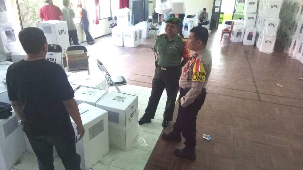 Kota Malang – Aparat Pengamanan TNI dari Kodim 0833 yakni Serda Sahrul Nasution dan sertu Heri P. yang bertugas sebagai Bintara Pembina Desa (Babinsa) wilayah kecamatan Klojen, melakukan pengawalan pengembalian logistik hasil penghitungan suara Pemilu 2019.