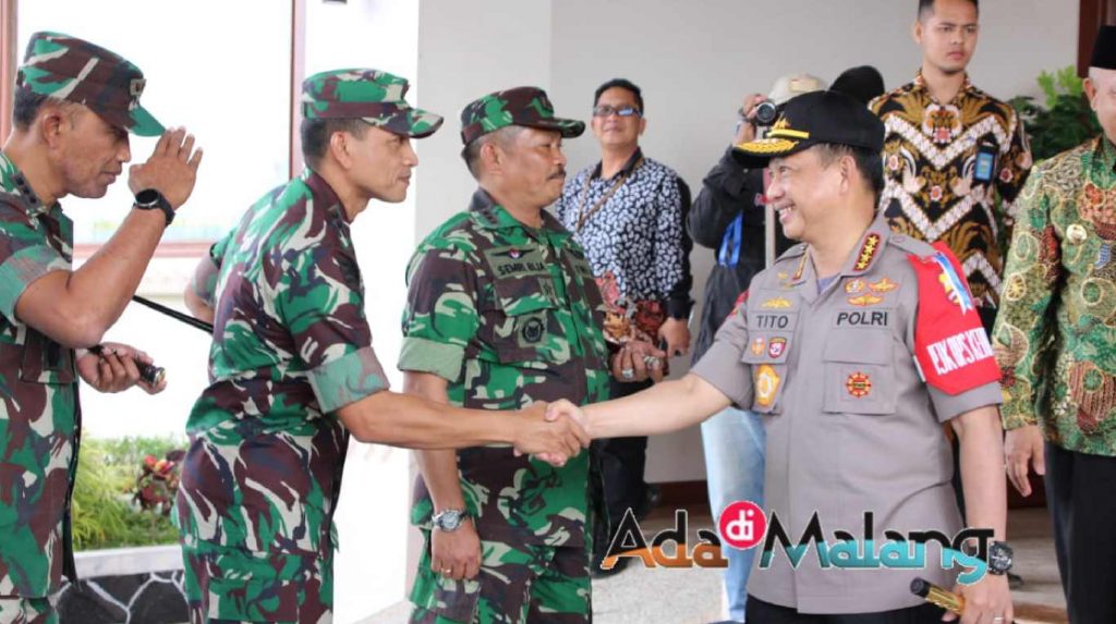 Danrem 083 Baladhika Jaya mendampingi Pangdam V Brawijaya dan Kapolda Jatim menyambut kedatangan Kapolri dan Panglima TNI ke wilayah Malang.
