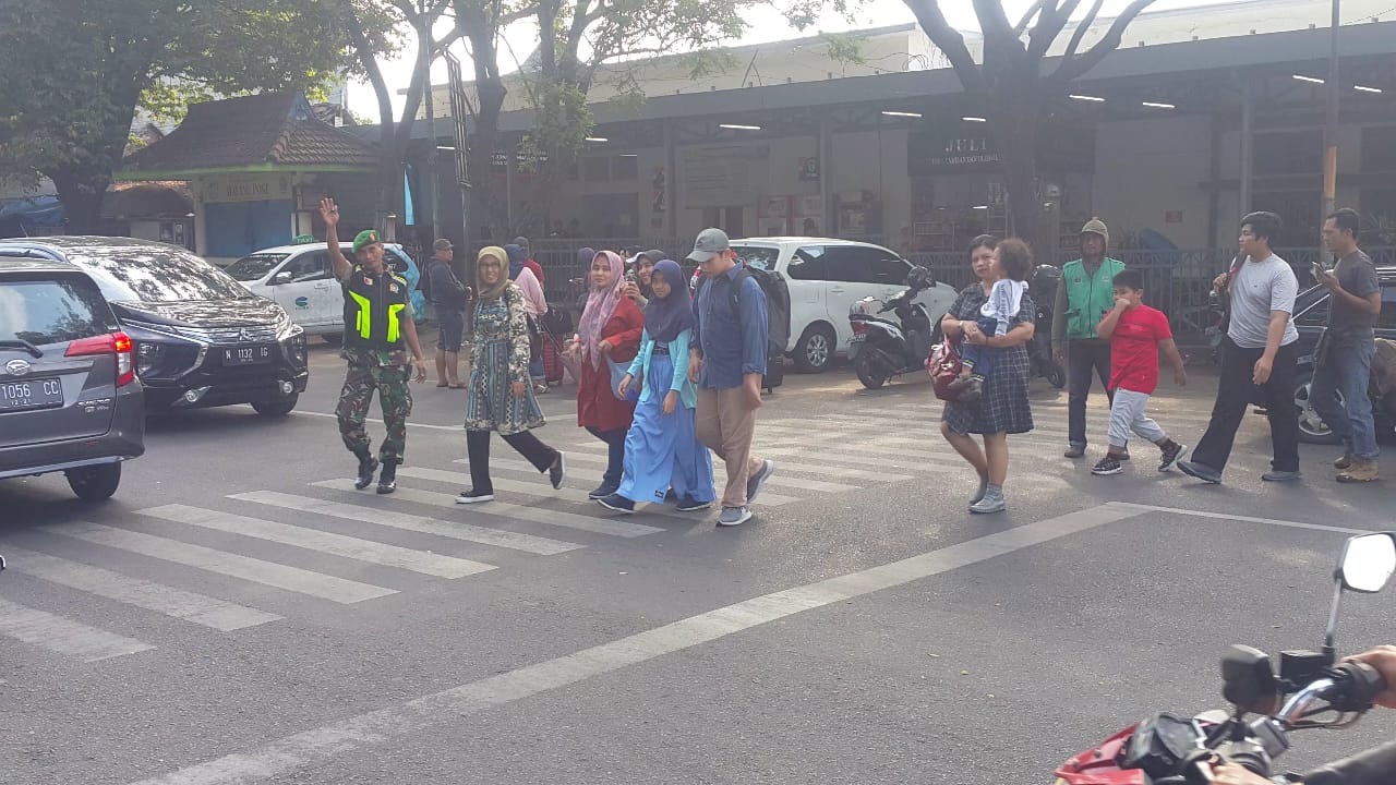 Nampak di sekitar pos pengamanan di depan stasiun kota baru para petugas gabungan juga melakukan pengaturan lalu lintas termasuk membantu para pemudik yang akan kembali ke tempat asal dengan menggunakan jasa angkutan kereta api. (A.Y)