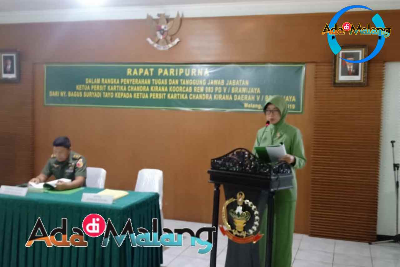 ADADIMALANG. Instansi – Bertempat di Koorcab Rem 083 Baladhika Jaya di jalan Mayjen Wiyono pagi ini (17/06) diselengarakan Rapat Paripurna dalam rangka Serah Terima Jabatan Ketua Persit Kartika Chandra Kirana Koorcab Rem 083 PD V Brawijaya yang dijabat oleh Anne Bagus Suryadi Tayo.