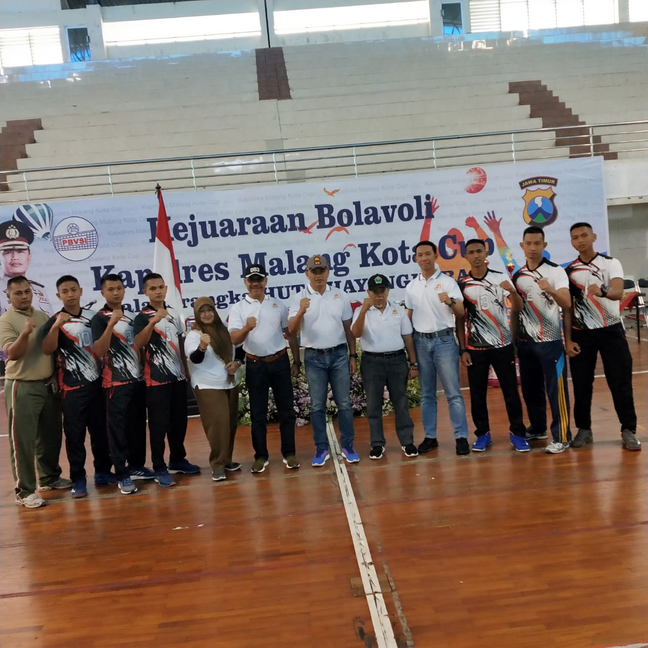 ADADIMALANG. Instansi – Kepala Staf Kodim 0833 Mayor Inf Heru Sunyoto menghadiri kegiatan Pembukaan Kejuaraan Bola Voli Kapolres Malang Kota Cup yang dilaksanakan dalam rangka peringatan HUT Bhayangkara ke 73 Tahun 2019 di GOR Ken Arok kota Malang pagi ini, Rabu (26/06).