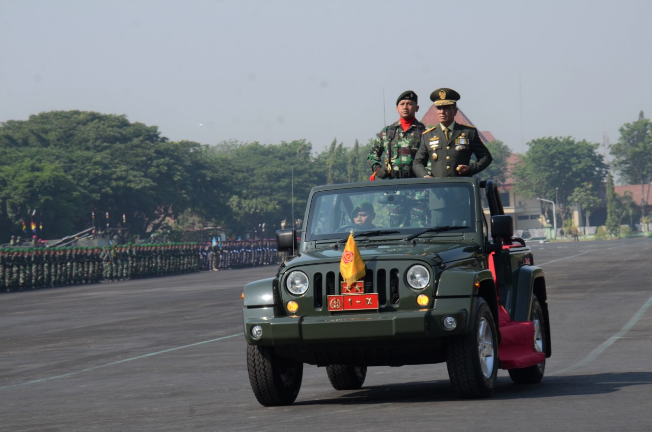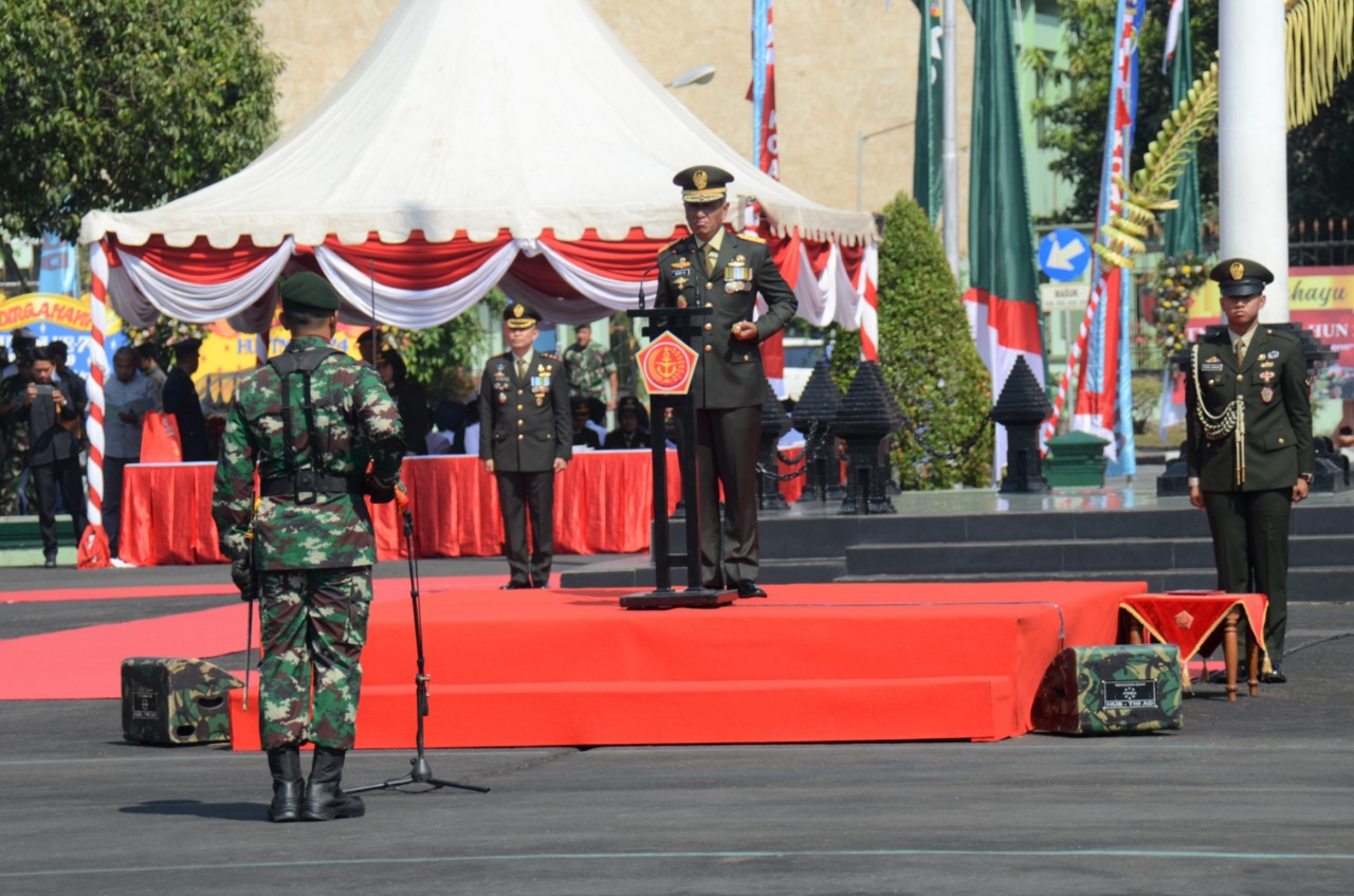 Panglima Kodam (Pangdam) V Brawijaya, Mayjen TNI Wisnu P. B. memimpin jalannya upacara Hari Ulang Tahun (HUT) Tentara Nasional Indonesia (TNI) ke 74 Tahun 2019 yang diikuti oleh Prajurit TNI, Polri dan elemen masyarakat.