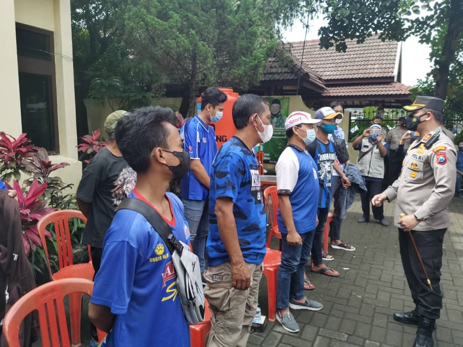 Sebanyak 300 orang masyarakat yang tinggal di wilayah kecamatan Blimbing telah mendaftar dan siap divaksin di Polsek Blimbing, termasuk sebagian yang mengenakan baju khas Aremania.