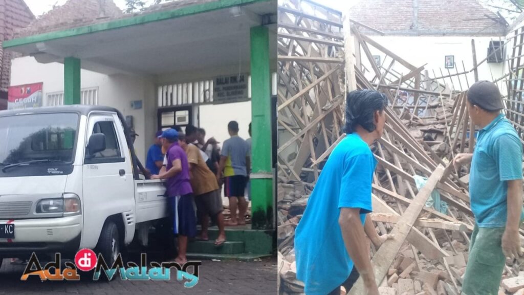 Usai mendengar Balai RW 04 Pandanwangi ambruk bagian atapnya, Pengurus RW beserta warga langsung melakukan kerja bakti untuk melakukan pembersihan puing-puing atap yang telah ambruk.