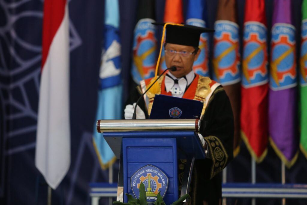 “Tataplah masa depan dengan percaya diri. Meyakini dapat memanfaatkan dan menciptakan kesempatan, serta mampu hidup mandiri. Ciptakanlah pekerjaan untuk diri sendiri maupun untuk orang lain yang memerlukan karya-karya saudara sekalian,” ujar Direktur Polinema.