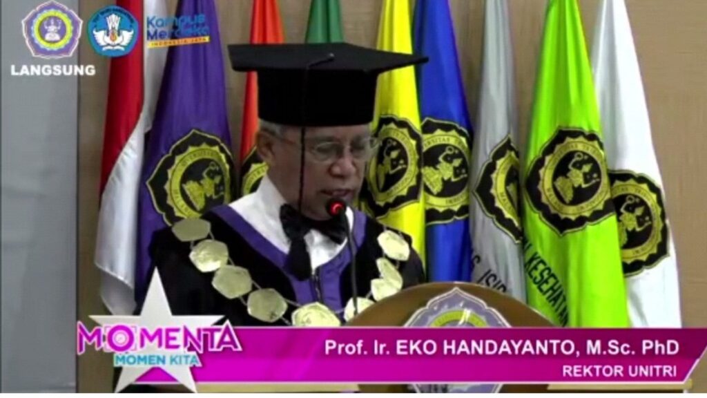 Dalam sambutannya, Rektor Universitas Tribhuwana Tunggadewi Malang, Prof. Dr. Ir. Eko Handayanto, M.Sc, dalam sambutannya menyampaikan bahwa wisuda bukan berarti anda berhenti belajar, karena setelah wisuda ini maka pembelajaran akan dilanjutkan saat turun ke masyarakat untuk menerapkan ilmu pendidikan yang diperoleh di kampus Unitri.