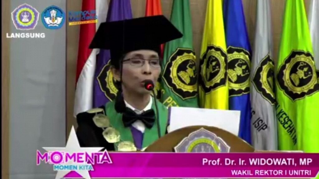 “Mulai pagi ini saudara adalah alumni, saya berharap tidak hanya menjadi job seeker melainkan juga menjadi pembuat lapangan pekerjaan. Alumni adalah salahsatu elemen penting dalam pengembangan kampus Unitri. Meskipun wisuda kali ini dilakukan secara daring, Kampus Unitri sebagai almamater saudara menghantarkan para mahasiswa dalam kondisi beriman, sehat, cerdas, berilmu dan siap meneruskan cita-cita perjuangan bapak-ibu sekalian,” ungkap Rektor Unitri Malang.