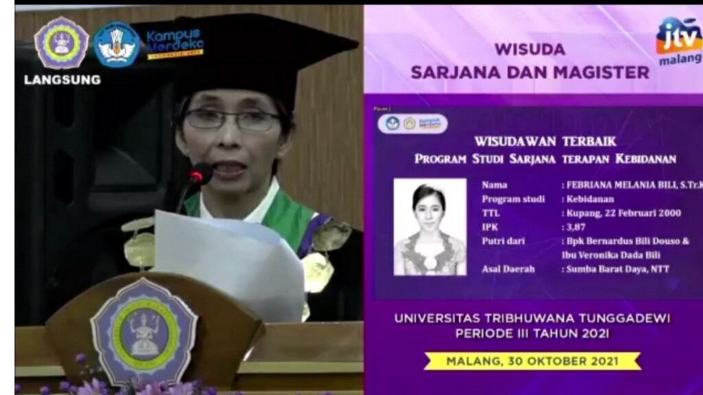 Pada wisuda periode III tahun 2021 ini Wisudawan Terbaik untuk tingkat Universitas Tribhuwana Tunggadewi berhasil diraih oleh Dhela Eka Wahyu Cahya Rahma, S.M dari Program Studi Manajemen Fakultas Ekonomi dengan raihan IPK 3,98.