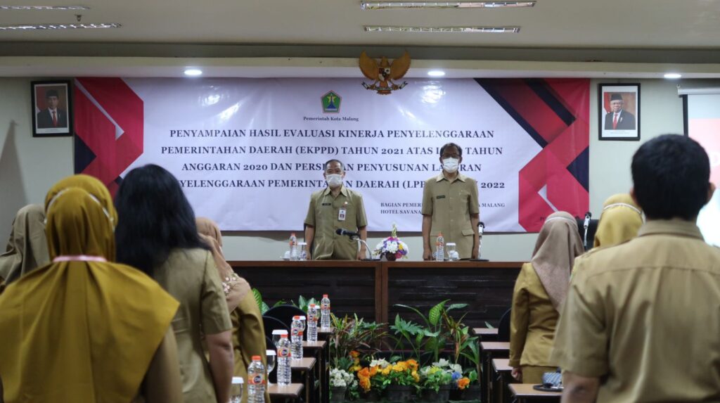 Hal tersebut disampaikan Asisten Pemerintahan dan Kesejahteraan Rakyat Kota Malang Drs. Mulyono, M.Si saat membuka kegiatan Penyampaian Hasil Evaluasi Kinerja Penyelenggaraan Pemerintahan Daerah (EKPPD) Tahun 2021 atas LPPD Tahun Anggaran 2020 dan Persiapan Penyusunan Laporan Penyelenggaraan Pemerintahan Daerah (LPPD) Tahun 2022 di Hotel Savana hari ini, Senin (16/11/2021).