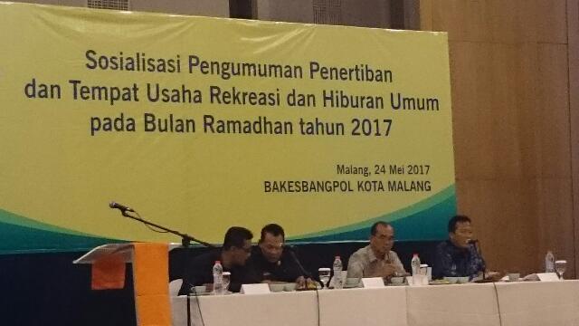 Larangan itu dituangkan dalam Pengumuman Walikota Malang Nomor 3 tahun 2017 tentang menyambut dan menghormati bulan suci Ramadan 1438 H/ 2017 M, yang disosialisasaikan pada pelaku usaha terkait di Hotel Haris Kota Malang, Rabu (24/5) malam.