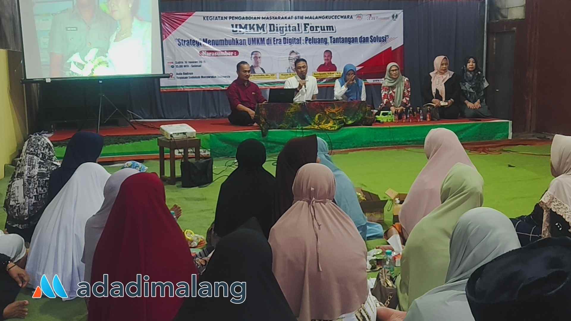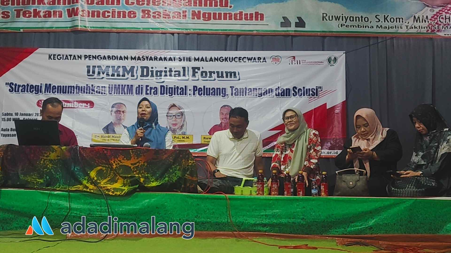 “Nah kehadiran kami dari STIE Malangkuçeçwara ini menghadirkan mbak Happy adalah sebagai upaya untuk membantu bapak ibu pelaku UMKM sekalian untuk dapat semakin mengembangkan usahanya. Kami mengajak njenengan sekalian untuk bekerja dengan memanfaatkan teknologi saat ini,” ungkap Dr Hanif.