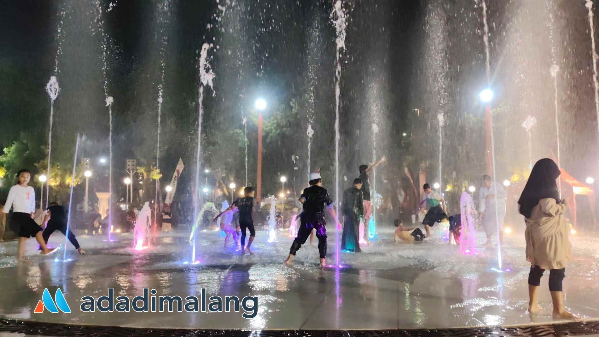 Suasana dan pemandangan air mancur Alun-Alun Merdeka Malang usai peresmian malam tadi (Foto : Agus Yuwono)