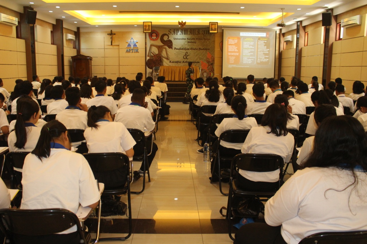 Dandim 0833 Beri Wawasan kebangsaan Maba Universitas Katolik Widya Karya Malang